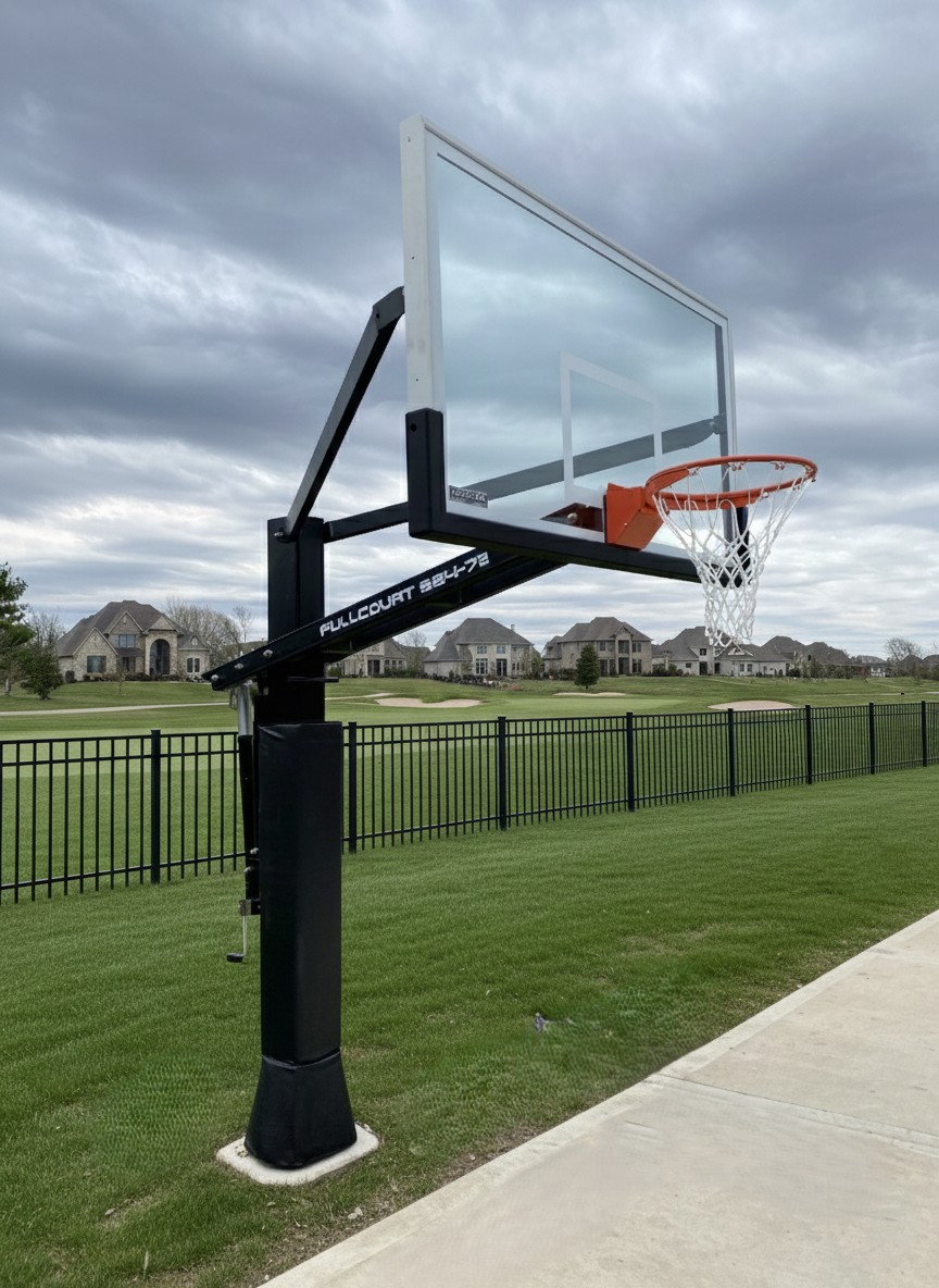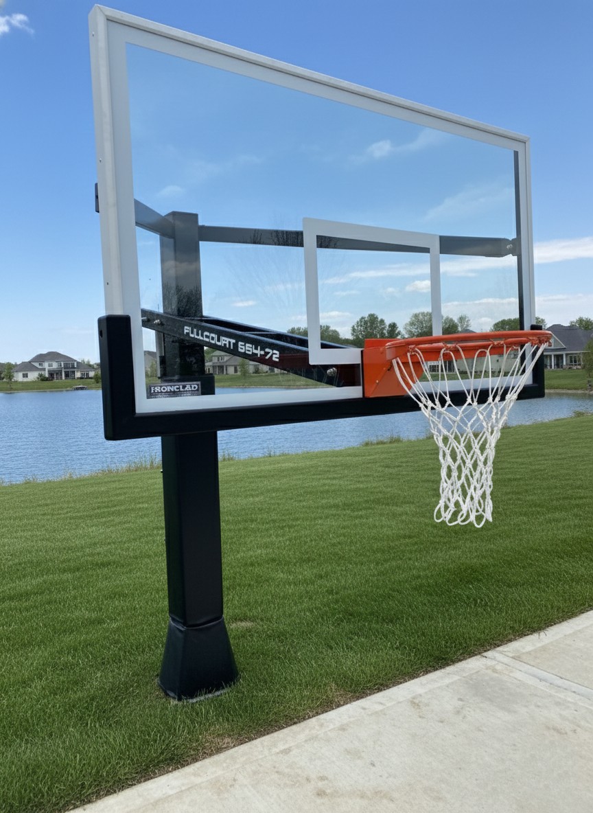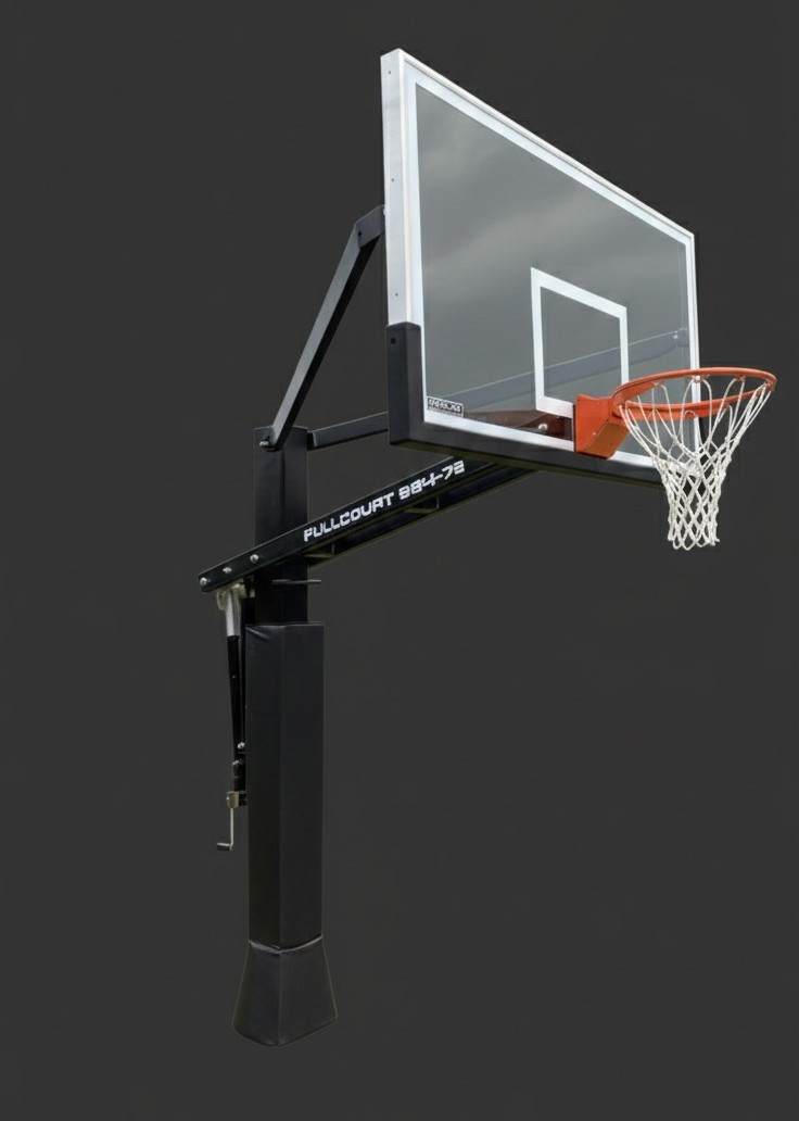 The FullCourt-72 is king of the court! This unit provides serious players with exactly what basketball specs require. The 6" x 8" post has a 48" offset, regulation sized 72" tempered glass backboard and our Clear View backboard mounting design just like the pros play on! With it's low setting of 5.5ft it's great for all ages.